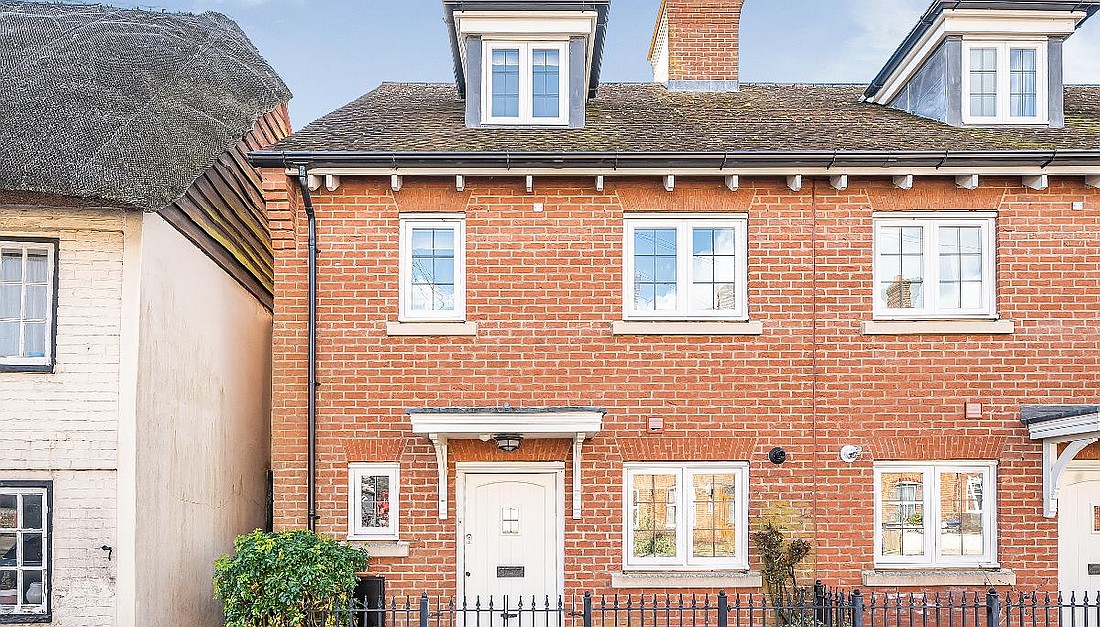 Upstairs, the main bedroom on the top floor has built-in wardrobes and an ensuite shower room. The second bedroom (on the first floor) is another comfortable double, ideal for guests, hobbies, or a home office. There's also a third room, currently set up as a study, plus a modern family bathroom.