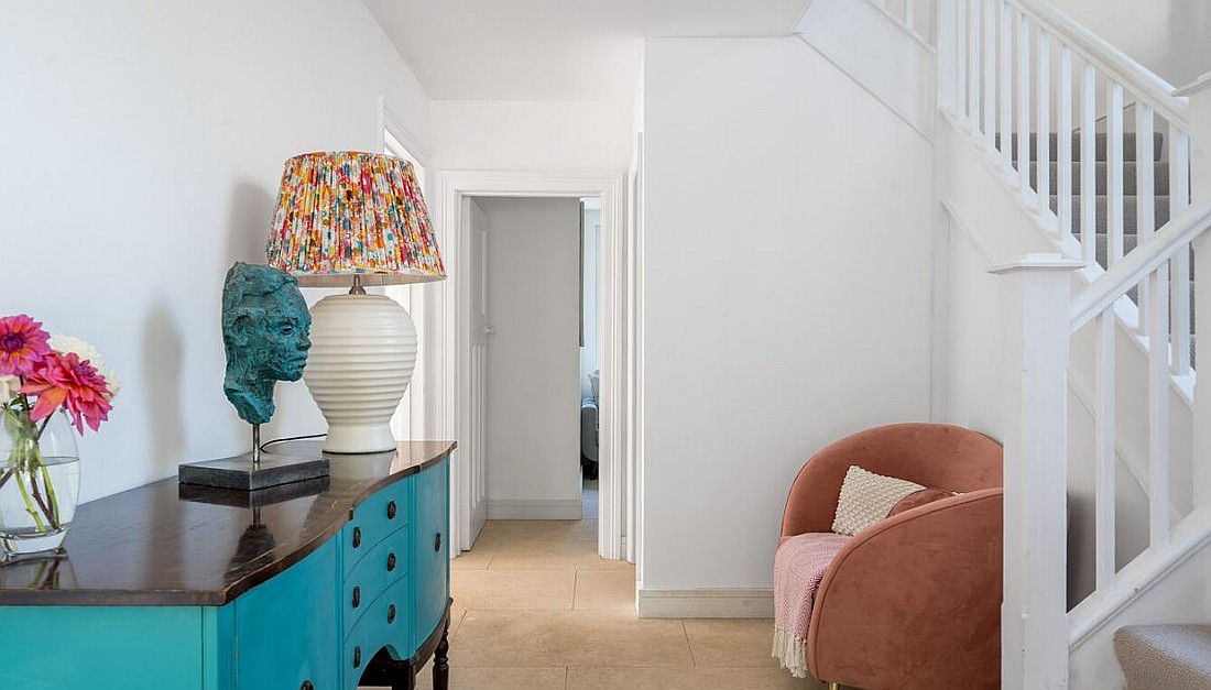 The front door opens into a welcoming hallway with stairs rising to the first floor and doors to all main rooms.