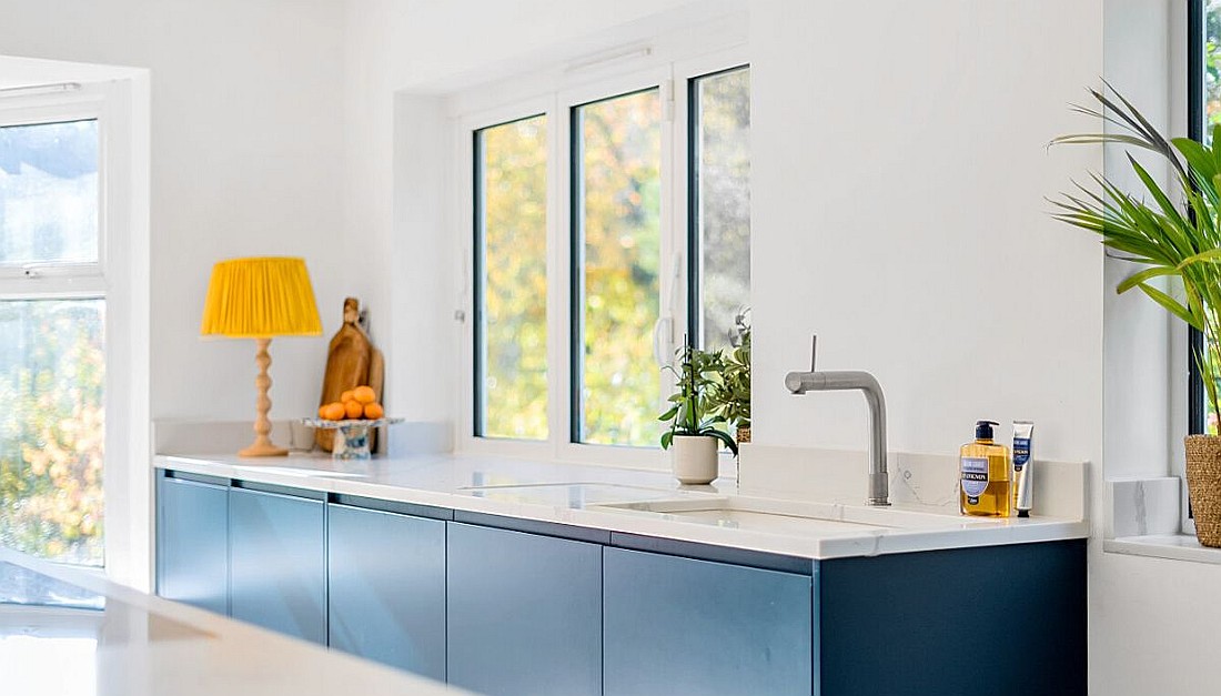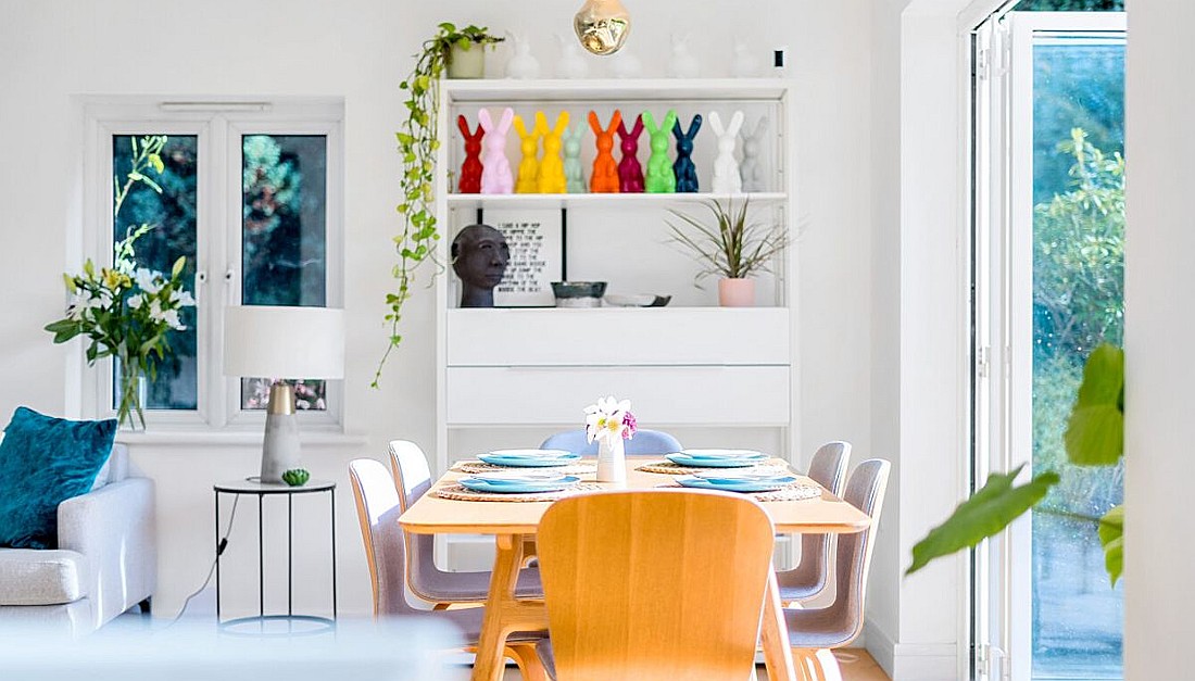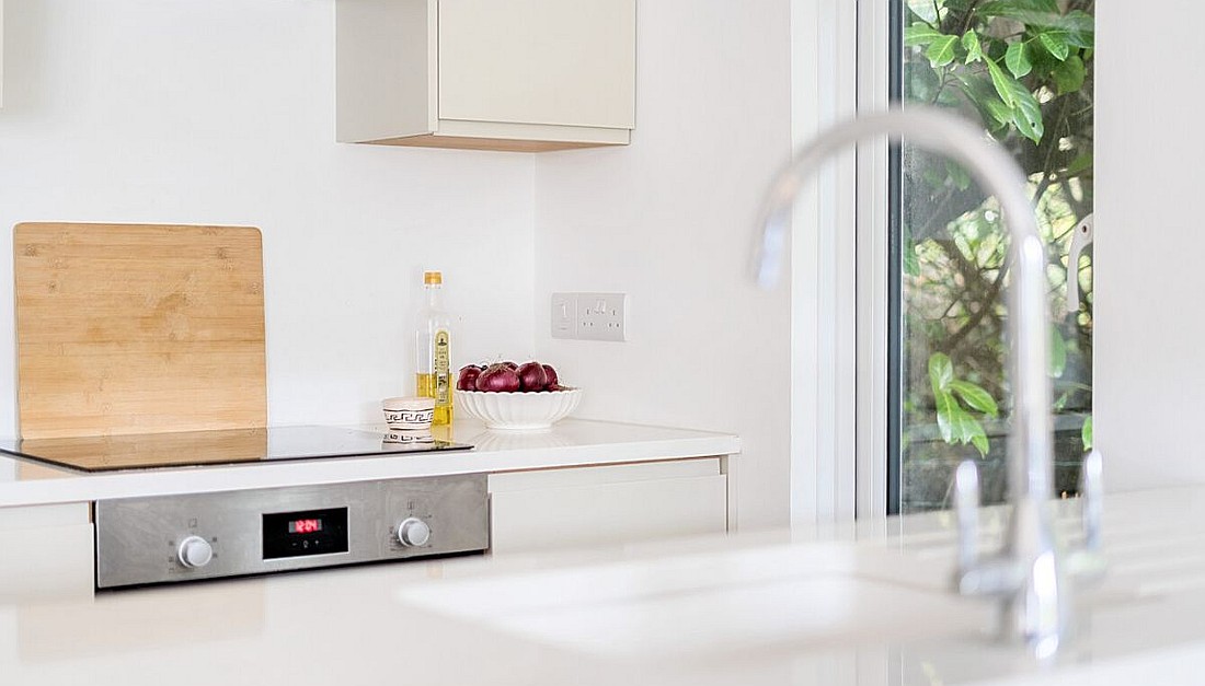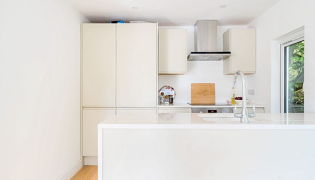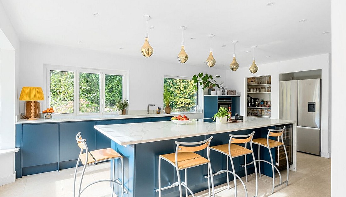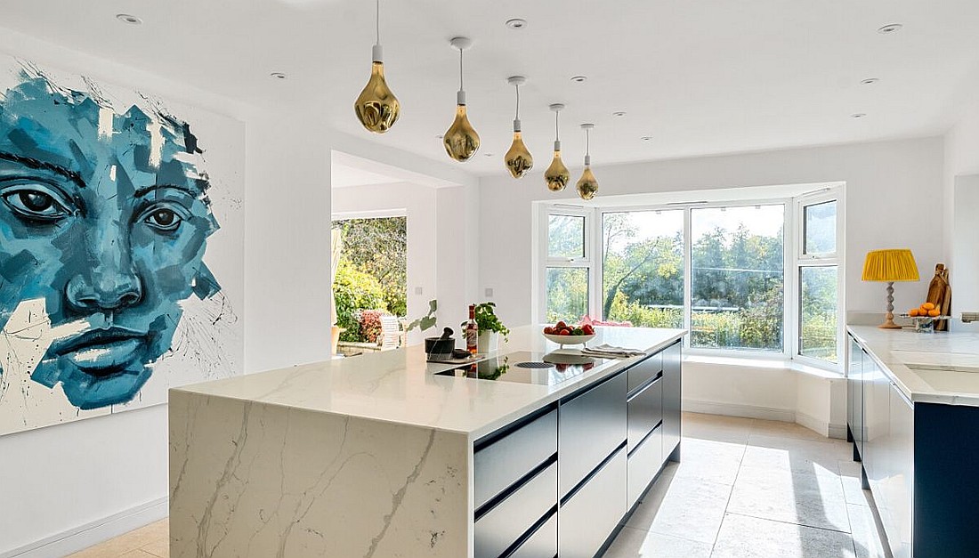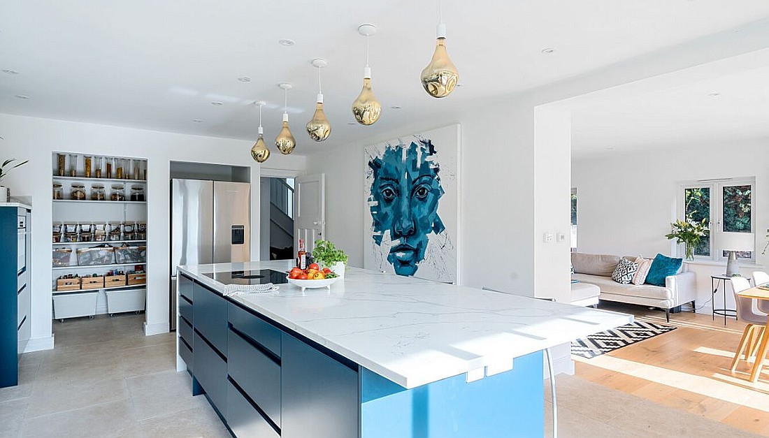 At the heart of the home is a large, open-plan kitchen, dining and living space that is south-facing, light-filled and designed for modern family life. The kitchen was relocated and completely redesigned as part of the renovation and features a huge island with breakfast seating, sleek cabinetry, a state-of-the-art induction hob with built-in extractor and a generous walk-in pantry. There's even a bifold serving window that opens to an outdoor coffee or cocktail counter.