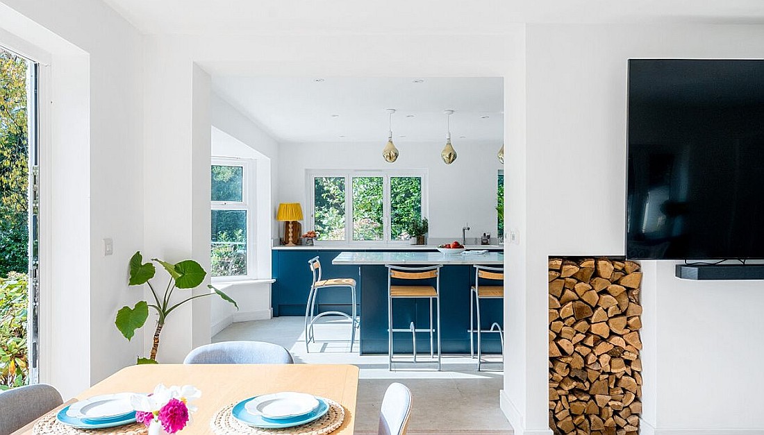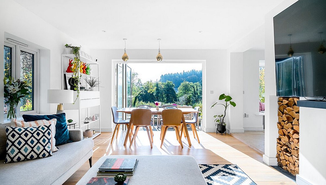 - Contemporary open-plan kitchen/living/dining room with bifolds to terrace
