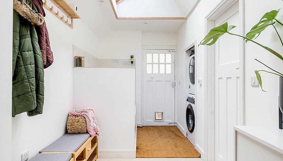 A separate snug or TV room provides a cosy retreat that is ideal for film nights, quiet reading or use as a home office. The back door opens straight into a generous utility room with a built-in dog shower, perfect for country living with muddy paws and boots. This leads through to the plant room, where a glass-covered well discovered during the renovation now forms a striking design feature. A stylish cloakroom completes the ground floor.