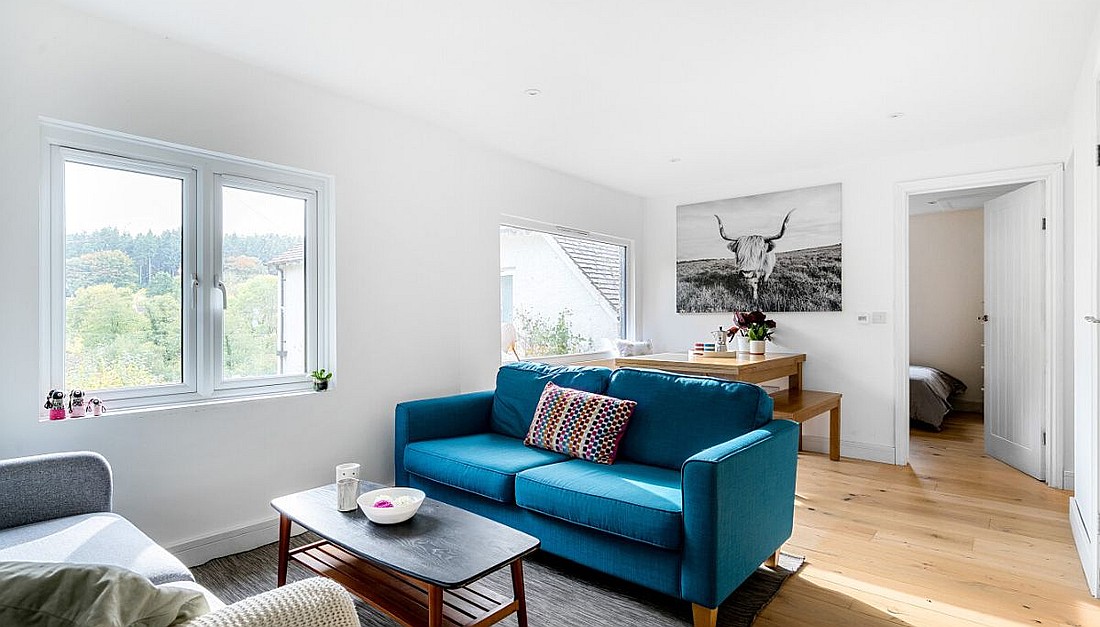 Above the detached garage sits a separate, self-contained two-bedroom annexe with far-reaching views. Accessed by steps from the driveway, it offers complete independence from the main house and includes an open-plan kitchen, living and dining space, two double bedrooms and a shower room. Perfect for guests, an au pair or carer, it's also an excellent option for anyone wishing to generate additional income through Airbnb.